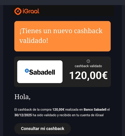 A mí me ha caído Sabadell 120€ sin reclamar la bajada a 96€ 🎉🎉🎉
