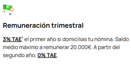 Lo que me ha pillado de sorpresa y aquí es totalmente culpa mía es que esta cuenta requiere nómina también, así que a lo mejor otra vez tengo el problema de CXB e IMG lanzando tintorros inmediatos. Tengo que mirar también si es con permanencia de 12 meses o de 24, porque si es de 24 es absurdo esta promoción frente a la otra de los 450 euros por nómina. Y tampoco tendría sentido que te ofrezcan un 3% durante un año y te obligan a estar dos años.