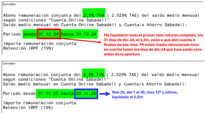La cuestión no es lo que aplique Sbd, sino lo que indican las bases. Y como he mencionado anteriormente las bases legales NO dejan lugar a dudas, Sbd aplica una remuneración incorrecta (tan incorrecta como cuando se estipulaba que dicha remuneración bonificada comenzaba a partir del siguiente mes al de apertura y esta era aplicada desde el momento de la apertura).