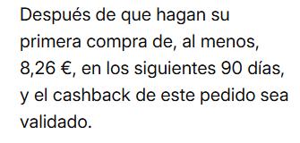 Con Igraal dan siempre al invitado 5€ o 10€, según enlace que escojas y a veces salen promociones que todos los enlaces ofrecen 10€ o 15€. Puedes registrarte el mismo día que salga la oferta de Sab.adell. Y cuando te vas a registrar, al abrir los enlaces te indica la recompensa que recibes. Ahora sí que ponen plazo para hacer la compra, 90 días desde el registro para hacer una compra de al menos 10€.