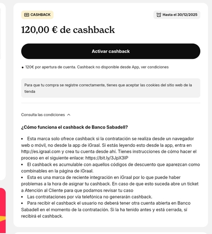 Cuando yo abrí en octubre era muy sencillo, de Igraal nos llevaba a Sab.adell y seguía la contratación normal. Todo desde web, activando cash y desinstalando app para que no interfirieran.