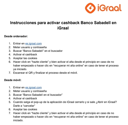Re: AHORRAR con cashback en iGraal - Cuentas Bancarias y otros