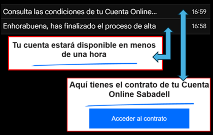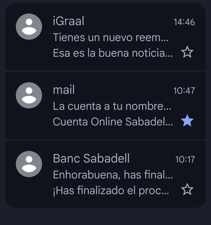 Correos de tarjeta activa y cuenta activa, respectivamente, aproximadamente 1h después de finalizar el alta.