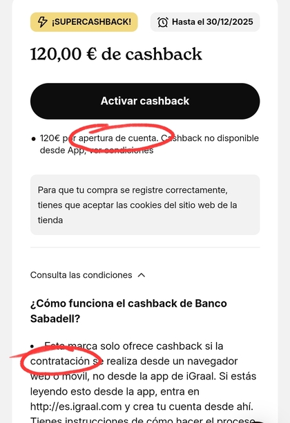 Re: AHORRAR con cashback en iGraal - Cuentas Bancarias y otros
