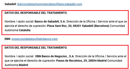 Sabadell: Ejercicioderechosprotecdatos@bancsabadell.com