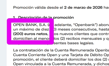 Re: Promoción Openbank sin nómina