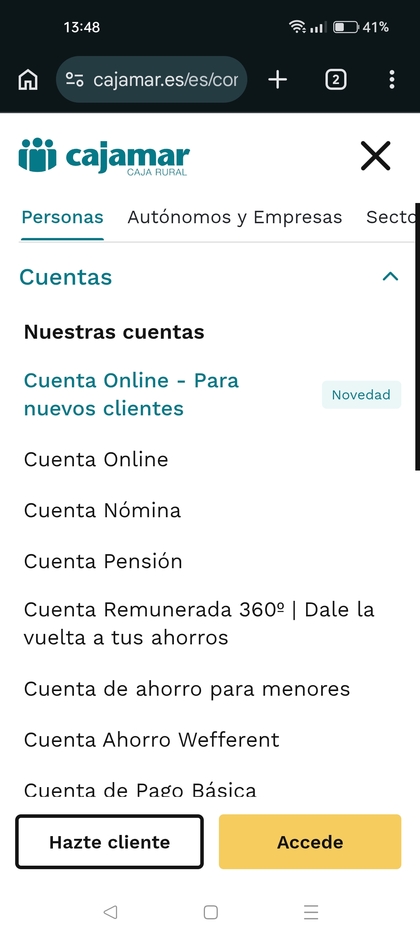 Menú Cuentas cajamar