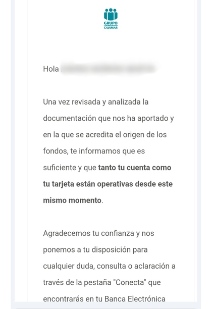 A mi me han hecho lo mismo. El viernes me llamaron solicitando documentación, hasta ahí pase, pero te indican en un correo inmediatamente después que mientras bloquean la cuenta. En media hora tenían la documentación subida a través de "conecta". Como no me respondieron a las dos horas les mandé un mensaje "amenazante" ya sabéis.. reclamación formal atencion al cliente y en su caso al Banco de España. Y ya por la tarde que seguía sin contestación puse la reclamación por correo electrónico y se lo comunique por "conecta". No tuve respuesta hasta el domingo a las 23:00 a través de "conecta" pidiendo disculpas y que procedian a solicitar el desbloqueo al departamento oportuno. Sin mas noticias por ahora. A ver, yo estoy tranquilo, es un banco español con oficinas y no tengo nada de que preocuparme. Además me ingresaron los intereses. Pero....ni olvido ni perdono. Estas cosas, para mi son intolerables. Aguantar los seis meses como mucho y hasta nunca. Por cierto, yo solicité antes de todo esto incrementar limite de transferencias y lo aceptaron.