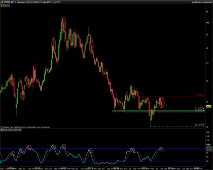 Sí, he ido comprando y vendiendo pero llevo una posición grande (no tanto como antes pero es mi mayor posición con diferencia). Esperaba a $28 para soltar pero no llegaron. Por? No debería? XD