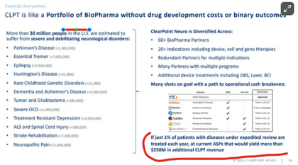 No es una compra de 500M. El acuerdo habla de 5M en efectivo al cierre + alrededor de 1,325,000 acciones nuevas de CLPT + un earn-out ligado a ventas futuras de los productos de IRRAS durante un periodo limitado. Con unas 28,4–28,5M de acciones en circulación, esa emisión supone una dilución aproximada del 4–5%, no “otro market cap” entero. El earn-out no es caja hoy: solo se paga si se logran umbrales de ventas; por eso no necesitan “encontrar” 450M adicionales.