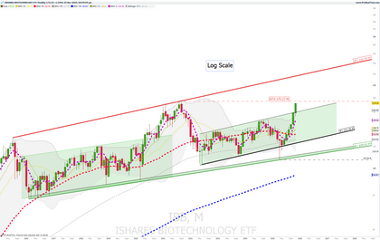 ETF de las 7 magnificas. Semanal pues ya veis el breakdown tambien. IBB velas 2- semanas activacion de cruce bajista en estocastico ... proyecto de shooting star a falta de completarse la proxima semana ...