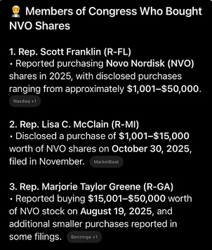 NVO yo tengo unas a 54 de hace un par de semanas o así, son pocas, estoy pensando vender en even porqué me interesan más otras. Aunque creo que puede ser una correcta inversión, en un año seguro que vemos los 80$ , pero eso que puede tomarse su tiempo.. ha invertido billonada en nueva fábrica en USA y se ha adaptado a la rebaja de precios de Trump, por lo que parece que está posicionándose para colaborar con USA. No sé si se ha comentado por aquí, que el cabroncete ese hizo algo bien , obligar a pharmas a reducir el precio real de los medicamentos en usa: insulina, migrañas, etc , vs el obamacare que era más un trato con las aseguradoras y subidas a los impuestos para que cubrieran una especie de sanidad publica. Durante el anuncio un directivo de NVO de semayó en el despacho oval, fué divertido..