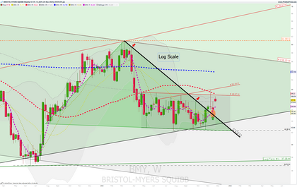 BMY semanal super tempranero huele a que el movimiento de retroceso ha sido para re-test de la resistencia superada de la cuña ... por ahora bien, falta confirmar superar los 50$ para un buen breakout, pues a ver ...