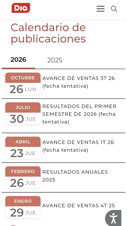 #23834 Re: Seguimiento de Dia (DIA) Ver mensaje de Sajublu Predicman1968 Seguir 27/01/26 20:09 El viernes 28 enero. En su web diacorporate.com lo puedes ver 1 Responder