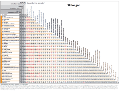 Cuelgo la siguiente imagen de un reporte de JPMorgan sobre las correlaciones del Mercado y los retornos esperados