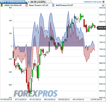 Por abajo los niveles del ibex muestran referencias en la zona de 75xx puntos.