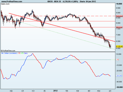 La interpretación en ese momento, y hasta que tenga datos del cierre del mercado de hoy, era continuidad bajista del ibex