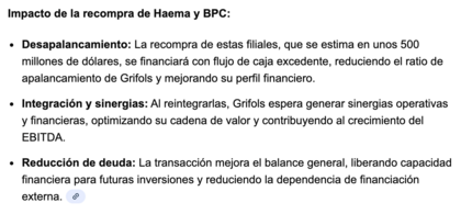 #7907 Re: Grifols (GRF): siguiendo de cerca la acción Ver mensaje de Roadtofreedom Top 25 Bacalo Seguir 18/12/25 22:00 Me parece que la IA no tiene incorporado el informe de Gotham .... Responder