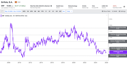 Porque un negocio tan endeudado como este, me siento mucho más cómodo valorándolo por EV/EBITDA. Y han dejado claro por sus acciones que no tienen mucha intención de disminuir la deuda bruta.