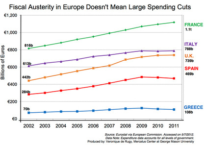 Depende de como definas necesitar. Si España redujera su nivel de gasto al que tenía en 2005 el déficit bajaría inmediatamente por debajo del 3%. Si lo bajara al nivel de 2000 tendría superavit. El problema es que España ha utilizado los ingresos coyunturales de la burbuja inmobiliaria y el festival de crédito para incrementar sus gastos estructurales. Por ejemplo el número de empleados públicos se ha incrementado entre 2005 y 2010 en 50.000 al año de media.