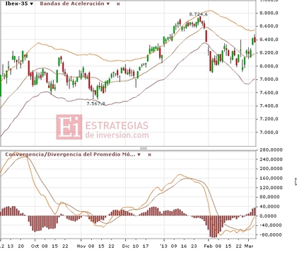 Nos encontramos en zona de sobreventa, y las divengencias alcistas previas se han tomado respiro en las últimas sesiones a favor de una continuidad bajista pero, por lo pronto, debilitada con respecto a la previa.