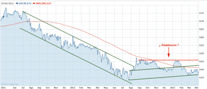 Cofide - Gruppo Benedetti era una de las apuestas importantes de Bestinver pero la abandonó. COFIDE - Gruppo De Benedetti SpA es la sociedad holding fundada por Carlo De Benedetti y controlado por el CDB y Sapa Sons encabezada por Rodolfo tres hijos, Mark y Eduardo. Cotiza en la Bolsa de Milán desde 1985, CIR es el accionista de control de CIR, empresa matriz de uno de los principales grupos industriales italianos activos en energía, medios de comunicación, componentes de automoción, sanidad e inversión no básicos. Ahora tal vez comience a recuperarse; tengamos en cuenta que el último bache coincide con las trubulencias de Chipre: ¿Cuál es vuestra opinión?