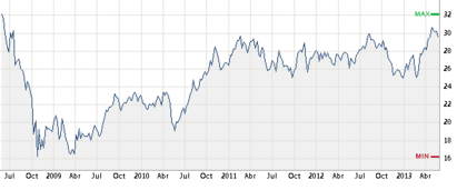 HA reducido un 90% beneficios http://economia.elpais.com/economia/2013/05/21/actualidad/1369121368_930701.html y sus previsiones han empeorado y el mercado la premia con maximos de 3 años......