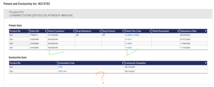 Pero sigue siendo fundamental obtener la nueva exclusividad hasta 2032, que no garantiza ventas pero sí protección al 100% ante genéricos hasta esa fecha. El resumen de todo esto, en el Orange Book de la FDA: