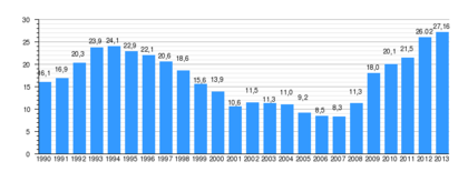Por curiosidad, qué os parece la relación entre paro y nivel del Ibex? Evidentemente según los gráficos está directamente relacionado, sobre todo en los últimos 15 años, que son más acorde a nuestro tiempo, a más paro menor nivel Ibex y al contrario. Actualmente tenemos el paro más alto desde 1993, puede que hayamos tocado suelo, porque ya hay poco empleo que perder, pero las previsiones del FMI no son buenas, afirman que le paro no bajará de 26% hasta como mínimo 2016.