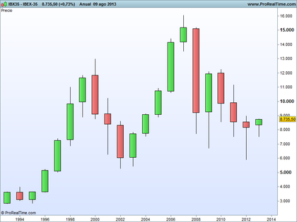 Hay que decir que esos 15182 del Ibex digamos que eran una burbuja, por eso no pienso que el Ibex esté barato actualmente en sus niveles, simplemente está donde tiene que estar sin la burbuja que hemos pasado de la construcción. ¿Cómo lo veis? ¿Podemos bajar más mirando la estadística, o España ha cambiado y nos dirigimos hacia la reducción de paro y por consiguiente niveles del Ibex por encima de los 8800 una vez consolidados. Mirando la escala los niveles de 9000 en Ibex consolidados se corresponden a más o menos un 13 - 11% de paro, muy lejos de los 26 - 27% actuales, mirándolo bien parece que el Ibex debería bajar más en estos niveles actuales y cerrar el año en unos 7500 puntos aprox, e ir cayendo hasta que el paro se reduzca, en 2016 si son ciertas las previsiones del FMI.