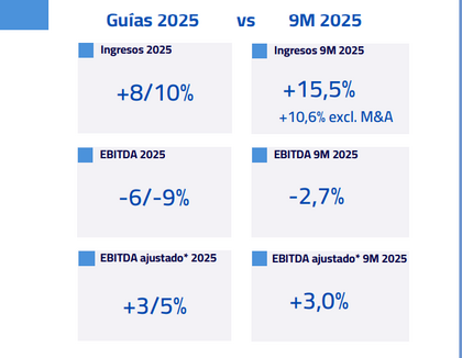 El EBITDA se situó en 106,5 millones hasta septiembre, un 2,7% menos. No obstante, esta magnitud se situó en el rango alto de la guía de beneficios de la compañía (-6%/-9%).