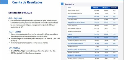 CdM | Los beneficios de Faes Farma (FAES) se resienten en los primeros nueve meses de 2025. Según ha informado la compañía a la Comisión Nacional del Mercado de Valores (CNMV), la ganancia neta entre enero y septiembre ascendió a 73,56 millones de euros, un 7,9% menos que los 79,84 millones registrados en el mismo período comparable de 2024.