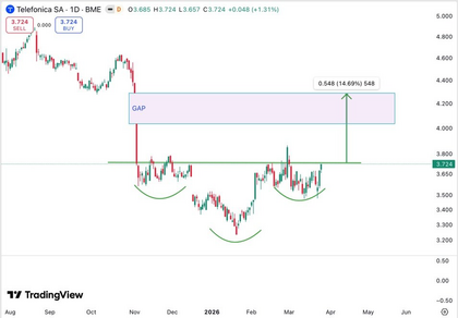 Pues mira en gráfico de velas mensual, febrero 2024 y marzo 2024 cierres en Febrero y Marzo y volúmenes. Este mes se ha hecho un lateral en rango y consolidando la primera figura q puse hace un par de meses, con un hchi más amplio. Alrededor de 340 M acciones, no lo tengo a la vista ahora, se han hecho en ese rango. Mira el volumen de febrero 24, el cierre de ese mes y el siguiente y verás. En gráfico mensual. Velas, volúmenes y precios de cierre