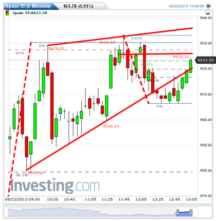 Lo agresivo entrar ahora mismo y vender si no rompe el 8630........y estar asi todo el dia..entrando sobre la base del triangulo, saliendo en 8630... entrar conrto en 8630 y salir en la base del triangulo......