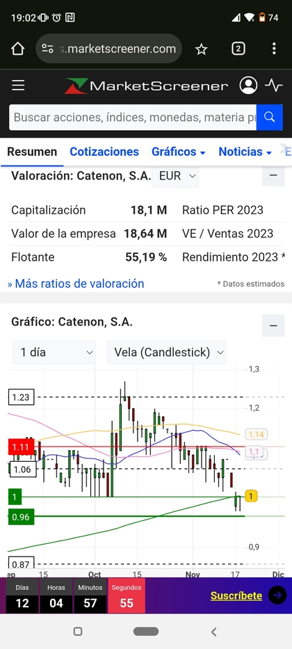 Esperamos movimientos en el valor Catenona corto plazo y AVANZO QUE SE AVECINAN MUCHAS NOVEDADES DEL GRUPO, tras la inyección de 1,4 M. €. en un buscador y el nuevo Socio TECH, entre otras mucha cosas.