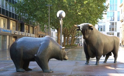 Foto.- El toro y el oso montan guardia ante el edificio de la bolsa de Frankfurt, en su eterna lucha de hermanos
