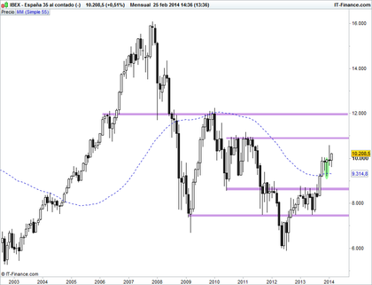Gráfico Ibex mensual que llevamos meses barajando, añadiendo una de ellas: