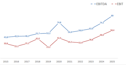 Aquí pongo un poco de perspectiva sobre cómo han evolucionado las cifras absolutas de EBITDA y EBIT estos últimos años. La tendencia es bastante clara...