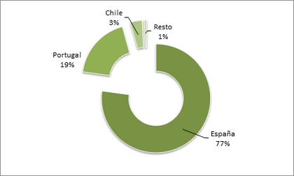 En cuanto al reparto geográfico del EBITDA, vemos una concentración casi total de negocio en España y Portugal: