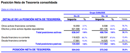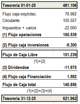 A 01-01-25 la empresa tenía en sus cuentas corrientes 481M, y un año después 621M, 140M de incremento. Esto es lo que ha pasado: