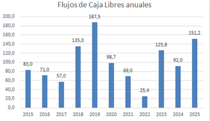 El flujo de caja libre ha sido de más de 150M en un solo año, una barbaridad…