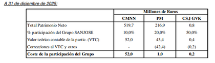 3.3 El valor razonable de los inmuebles de uso propio (edificios corporativos) del Grupo al 31 de diciembre de 2025 y 2024 asciende a 33,5 y 32,4 millones de euros, respectivamente, de acuerdo a las valoraciones realizadas por un experto independiente (“Instituto de Valoraciones, S.A.”). El coste neto en libros de estos elementos a 31 de diciembre de 2025 y 2024 asciende a 15,1 y 14,9 millones de euros, respectivamente