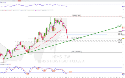 HIMS, el 50% fibo aguanta, me aferro a eso. A ver ese estocástico si hace reaccionar al precio en el próximo cruce, tiene que estar al caer ...