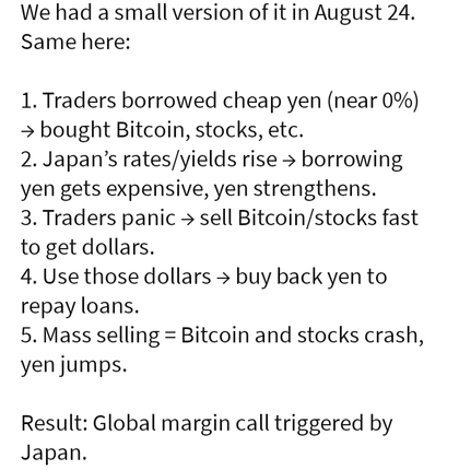 Yo tampoco tengo ni idea, pero donde esta esa subida de interes o del yen, para la entrada en panico de golpe, o sea no varia nada en un dia como hoy ese cambio, no digo la tendencia que si es mala en el yen, y umnn bueno hoy de repente todos los empeñados en yenes se dan cuenta de esto,todos a la  vez,y hoy no ayer, que ha variafo nada,