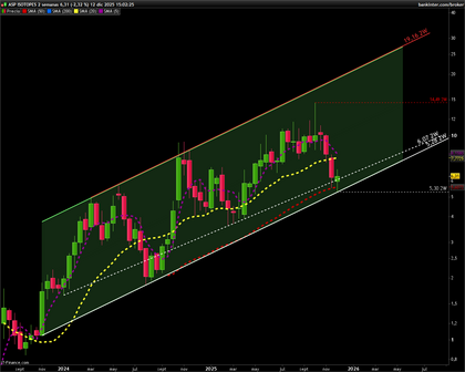 HIMS velas 2-semanas, banderas , cuñas alcistas y rallies de +150%/+200% tras las señales de estocastico ( aun quedan unas cuantas semanas para la siguiente pero espero que los minimos ya se hayan visto)