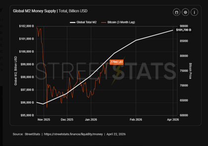 Una de las causas del giro del Bitcoin la liquidez a raudales que se visualiza en la masa monetaria M2 que no deja de incrementarse