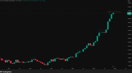 Para mi manera de verlo, y de la forma que aplico mi sistema, buscando esa asimetría riesdo/beneficio por momento de localización de prefase tendencial, pues me encuentro ya en una orbita superior, extremada en fase muy madura, por lo tanto, y en esa observación de indicadores que infiero, para mi, repito, desde mi perspectiva de aplicación NO compensa el momento para posicionamiento por riesgo a asumir. Ahora bien, para el que tenga ORO físico, para el que esté comprado en cualquier activo que lo replique, pues es un disfrutar sin concesiones, por supuesto que si, pero para quien busque posicionarse en este desarrollo de fase, personalmente lo veo como un riesgo alto.