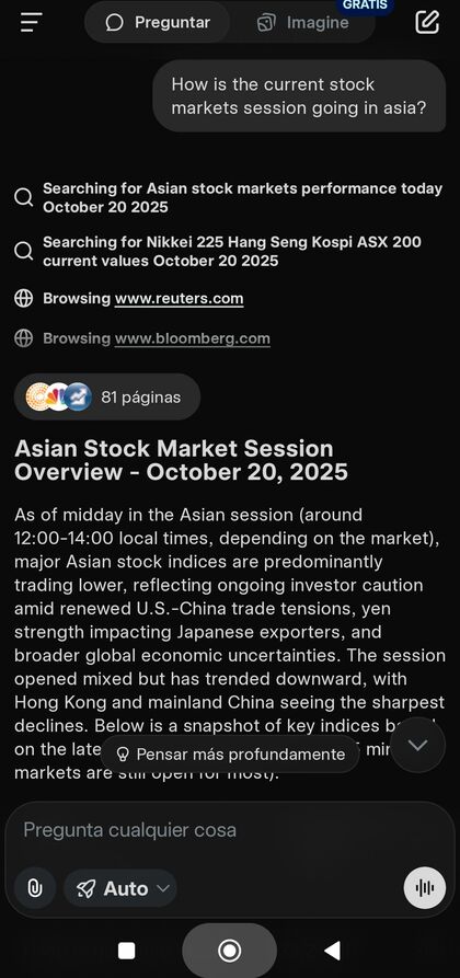 Esta noche le pregunté que tal iba la sesión en Asia, y me dijo que había caídas bastante fuertes, cuando la realidad es que no paró de subir. Quozás no entiende el concepto del tiempo y me respondió con datos del viernes.