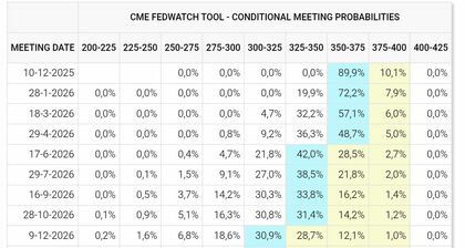 Veremos como se lo toma el mercado, se despejan las dudas sobre la próxima bajada de enero (que no se dará, pero el mercado en realidad ya no contaba con ella). El mercado ya refleja solo una bajada en junio, tras la salida de Powell, y otra en diciembre 2026, por lo que puede que la Fed no mueva mercado (aunque habrá volatilidad como siempre) y sigamos con las bolsas un tanto perdidas.