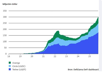 Circle (azul claro), Tether (azul), y resto (verde)